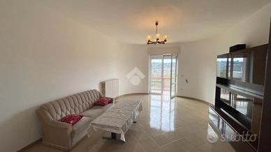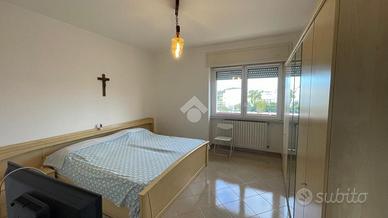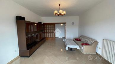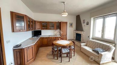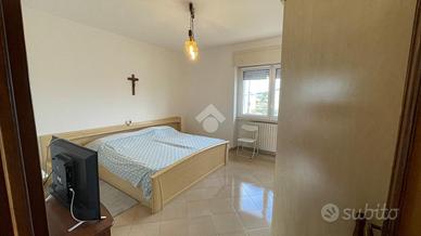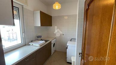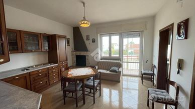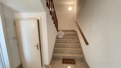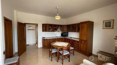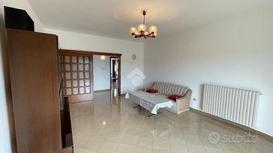 L' abitazione si compone al piano primo da ingresso, sala da pranzo con balcone, cucinino, dispensa, salotto ampio e luminoso con balcone che collega anche le camere da letto di cui due singole e una matrimoniale,bagno e ripostiglio. L' immobile al piano terra possiede un garage di circa 120 mq e giardino antistante e retrostante con una comoda entrata secondaria.
