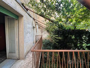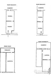 A piano rialzato, l'immobile si suddivide in due sezioni comunicanti internamente. Alla soluzione si può accedere da due ingressi separati, in modo da essere divisa in due vani per ciascuna sezione. Dalle stanze retrostanti si accede a un giardino privato.