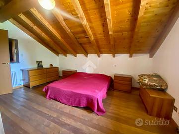 * Piano secondo : ampia camera matrimoniale con travi a vista, locale ripostiglio con WC.Una comoda scala interna collega tutti i piani, mentre le numerose finestre rendono ogni ambiente molto luminoso.