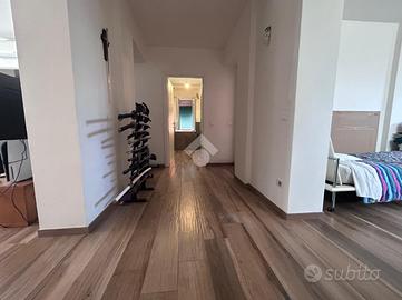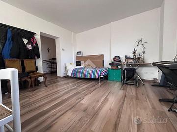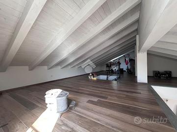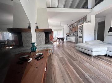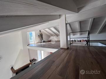 La soluzione al primo piano non ha posto auto in quanto è un piano rialzato, ma ha in dotazione una comoda corte esterna e un balconcino dal quale si può accedere alla cucina. L'interno si apre su un luminoso e ampio soggiorno open-space dotato di camino,tramite disimpegno si ha l'accesso alla camera da letto matrimoniale con cabina armadio, ad ampio bagno finestrato e un locale lavanderia. Infine tramite scala interna si raggiunge il soppalco mansardato e finestrato, nel quale si può ricavare una seconda camera.