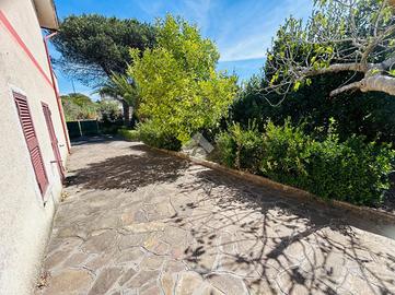 Villa unifamiliare strutturata su 2 livelli. Piano terra con portico di 43 mq. Ingresso, salone con camino, cucinotto finestrato e bagno. Sala adiacente di 24 mq con accesso utile anche per poter mettere le auto. Si accede al 1°piano con una comoda scala in marmo e troviamo 4 camere da letto e bagno con vasca. Terrazzo di 43 mq. Lotto di terreno di totali 900 mq che circonda l'immobile, ristrutturato esternamente nel 2015. Internamente la soluzione si presenta in buono stato, dotata di infissi in alluminio con doppio vetro, impianto d'allarme funzionante e camino nella zona giorno. Visionabile tutti i giorni previo appuntamento.