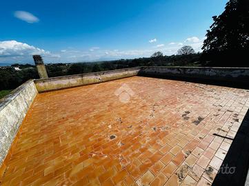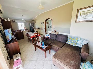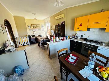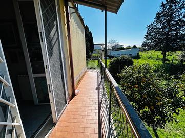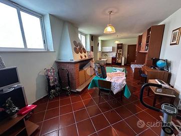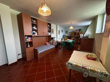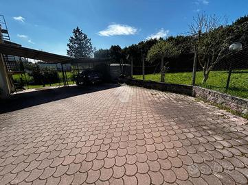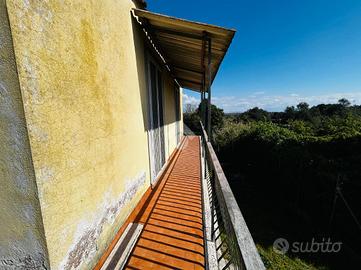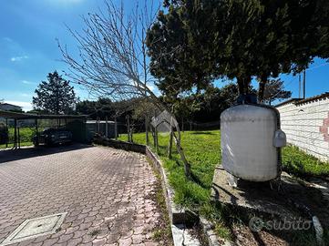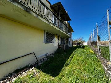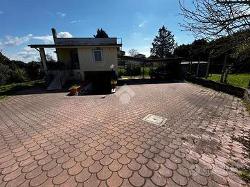 Soluzione singola su lotto di terreno di 1200 mq avente accesso carrabile. Al piano rialzato troviamo il portico di 14 mq, ampio ingresso, soggiorno ed angolo cottura, 2 camere da letto e bagno. Circonda l'immobile il balcone che prende 3 lati. Una comoda scala interna al soggiorno porta al piano seminterrato dove troviamo una sala hobby di 40 mq con camino interno e pavimentazione in cotto, ed un bagno con doccia. Di lato c'è il box auto di 25 mq con basculante motorizzata. L'immobile si presenta in buone condizioni interne, dotato di climatizzatori d'aria, stufa a pallets e grate. Visionabile tutti i giorni previo appuntamento.