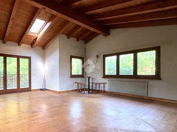 Salendo al piano superiore troviamo un sottotetto abitabile dalle generose altezze, uno spazio versatile che può essere trasformato in ulteriori camere, studio o zona relax. Dal sottotetto si accede a un terrazzo esterno che gira attorno all'intera abitazione, offrendo scorci suggestivi e la possibilità di creare angoli all'aperto riservati.
