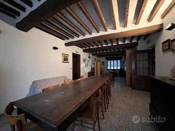Al piano terra troviamo una spaziosa zona giorno composta da soggiorno e sala da pranzo, a seguire antibagno e bagno finestrato dotato di vasca e doccia. Completano il piano una seconda cucina con ampia dispensa, una cantina direttamente collegata all'abitazione e un comodo ripostiglio.
