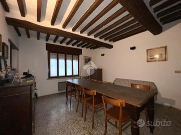 Casa semindipendente disposta su due livelli, caratterizzata da un ampio ingresso che conduce all'interno dell'abitazione.