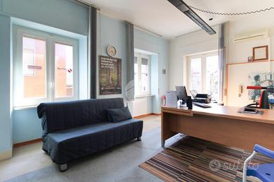 Piano primo: trilocale attualmente adibito ad ufficio con tre ambienti versatili e la possibilità di ripristinare un appartamento con soggiorno, 2 camere e bagno finestrato con box doccia.
