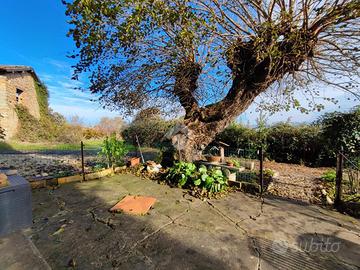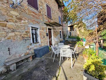 La casa si trova in Val Grue, valle di forte sviluppo enogastronomico grazie ai prodotti tipici e ai vini del territorio tra cui il Timorasso. La caratteristica facciata è in pietre e sassi a vista. L'abitazione è semindipendente, disposta su più livelli e sita in posizione soleggiata e panoramica. L'accesso è tramite un grazioso cortiletto ideale come piccolo angolo relax con vista sul verde della valle. Il piano terra ha l'ingresso sul vano scala con cucina ad uso tavernetta, soggiorno e ripostiglio cantinotto. Le due camere da letto matrimoniali, la cucina e il bagno con la doccia sono al primo piano. Il piano sottotetto è suddiviso in due ampi locali attualmente al grezzo con tetto a vista in legno e originali tavelle cotto. Adiacente alla proprietà vi è un porticato su tre livelli con il locale cantina al piano terra e sovrastanti due locali sgombero, oltre all'androne sul retro, da poter sfruttare come posto auto coperto, con ulteriore locale sgombero al piano primo. Il magazzino/tettoia di proprietà separato dalla stradina, si trova nelle immediate vicinanze e si presta, anch'esso per posti auto coperti. Il terreno agricolo di circa un ettaro era già precedentemente lavorato ed è ideale per un eventuale impianto vitivinicolo.
