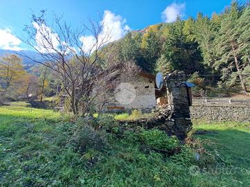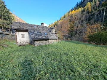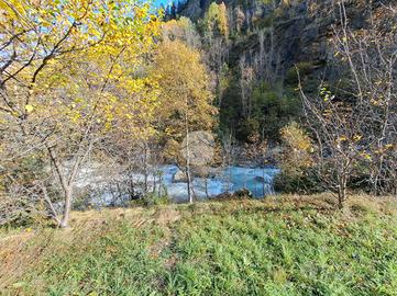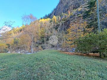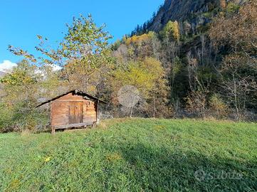 Sulla strada che arriva alla rinomata Cogne, lungo la via, poco dopo il famoso ponte, baita completamente indipendente circondata da 4.500mq. di terreno di proprietà in piano con vista mozzafiato sulla vallata e sul grande torrente Grand Eyvia che solca la grande Valle.