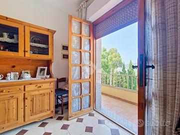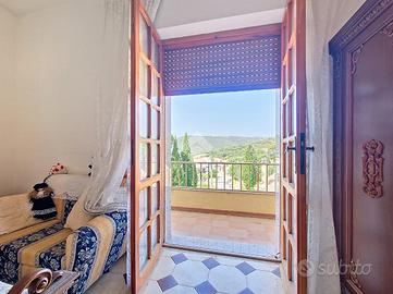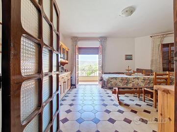 Appartamento situato al primo piano, con accesso tramite scala interna. L'ingresso si apre su un corridoio che conduce, sulla destra, a un luminoso soggiorno con angolo cottura e uscita sul terrazzo, proseguendo troviamo il comodo ripostiglio, il bagno finestrato, la camera e la camera padronale con uscita sul terrazzo. Da quest'ultimo si ha una vista panoramica sul paese di Badesi e uno scorcio di vista mare. Un punto a favore di questa soluzione è che trattandosi di una soluzione indipendente non sono presenti costi condominiali e anche i costi di gestione sono inferiori.