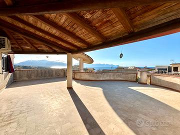Piano secondo ampio terrazzo solarium con vista mare ed appartamento mansardato di mq. 100 composto da ingresso su zona giorno unico ambiente con camino e cucina a vista in muratura completa di elettrodomestici con annessa zona lavanderia/dispensa, disimpegno zona notte con armadio a muro, bagno con doccia e 2 camere da letto.