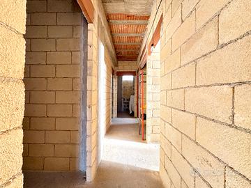 Al piano primo tramite scala esterna si accede ad un appartamento di mq. 130 allo stato grezzo con divisione interna già realizzata per un totale di circa 6 vani.