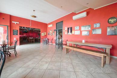 Al piano terra troviamo un ampio locale commerciale composto da zona bar con grande sala, comunicante con l'altra, dove è possibile effettuare esibizioni di gruppi musicali dal vivo. La sala inoltre è dotata anche di palco scenico con zona pizzeria e forno a legna.