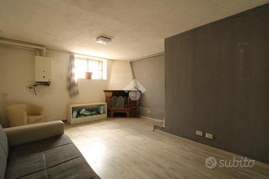 Al piano seminterrato si sviluppa la taverna fornita di camino.