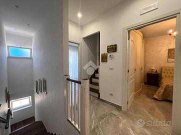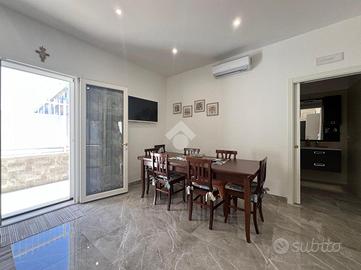 In Via Calò disponiamo di una palazzina indipendente totalmente ristrutturata nel 2022. L' immobile disposto su 2 livelli è così suddiviso: ampia sala a vista, cucina abitabile con accesso sulla verandina retrostante, bagno e ripostiglio posti a piano terra, invece al primo piano abbiamo le 2 camere da letto entrambe con balconi e un altro bagno. Scalinata per accedere al terrazzo sovrastante di 70 mq. ca. con possibilità di edificare. A completare l' immobile ci sono 2 posti auto privati. Ottime le condizioni sia interne che esterne. Ogni agenzia ha un proprio titolare ed e' autonoma - Le presenti informazioni non costituiscono elemento contrattuale.