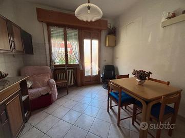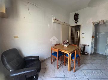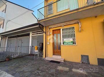 L'ingresso si apre sulla zona giorno al piano terra, composta da soggiorno con tinello separato, un disimpegno e una camera da letto matrimoniale con accesso su un piccola corte, servita da un bagno con doccia.