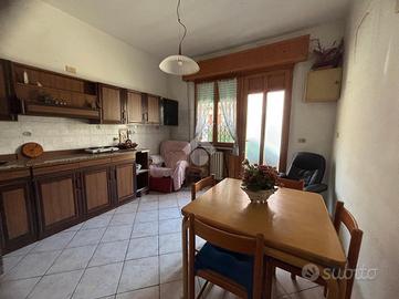 La soluzione offre spazi ben organizzati e funzionali e dispone anche di un box auto, aggiungendo praticità alla soluzione abitativa.