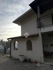 Bellegra: In posizione collinare e panoramica, si propone in vendita intero edificio costituito da due appartamenti distinti e così disposti: P. primo portico, ingresso, cucina abitabile, salone con camino, tre camere, bagno e balconi. In discreto stato abitativo. Mentre al piano secondo mansardato appartamento allo stato grezzo da rifinire predisposto per un salone con angolo cottura, tre camere e servizi. Completa la proprietà due locali cantina e un terreno collinare di c/a 10.000 mq coltivato ad oliveto. L'immobile è Ideale per due nuclei famigliari o prima abitazione principale.