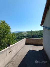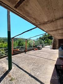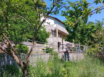 Bellegra: In posizione collinare in contesto verdeggiante e molto riservato, si propone in vendita Fabbricato indipendente disposto su tre livelli, così attualmente disposto: P. terra locale garage, tinello con angolo cucina, camino e bagno. Piano primo raggiungibile da una scala esterna si trovano due camere da letto e un bagno distinte ognuna con la propria entrata esterna. Terzo e ultimo piano predisposizione per un secondo appartamento in cui si può ricavare un saloncino con angolo cottura, camera e bagno e terrazzo, attualmente grezzo. l'immobile è da rifinire e da ristrutturare in maniera generale, ad eccezione della struttura portante. Completa la proprietà un terreno terrazzato di 1890mq. Acqua diretta, luce e fossa biologica allacciate. Per accedere all'abitazione bisogna fare la strada cementata o asfaltata in quanto gli ultimi 500mq sono percorribili soltanto tramite percorso sterrato, Dista invece poco più di un km dalla fermata bus direzione San Vito/Bellegra. panoramica e ben assolata.