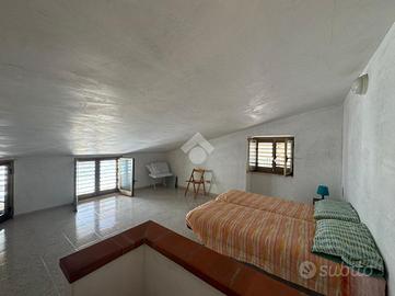 Al piano terra, si trova una cucina ben organizzata e un bagno con doccia. Salendo al primo piano, si accede a una luminosa camera da letto con balcone, da cui si può godere di una splendida vista sul mare, e un secondo bagno. Il secondo piano ospita una mansarda con una stanza versatile, perfetta per essere adattata alle proprie esigenze.