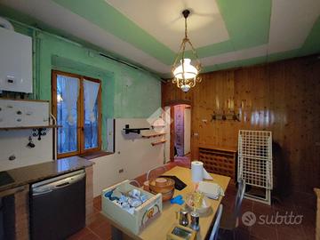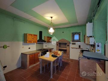 L'abitazione disposta su più livelli ha ingresso dal piano terra con un locale adibito a cucina con la caldaia e la tavernetta con il camino.