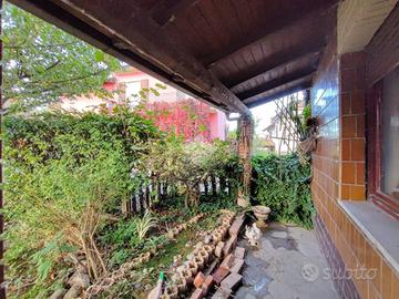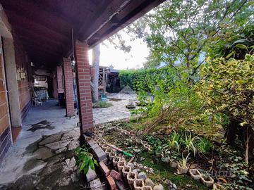 Sul retro dell'abitazione, c'è il cortile privato con il porticato e la zona barbecue con forno a legna. L'ingresso principale da' sul vano scala, oltre alla cucina in muratura con il balcone e ampio soggiorno con il camino.