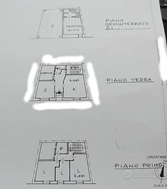 Piano primo: andito, camera matrimoniale, altre due camere, bagno con vasca.