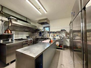 Dietro il negozio, si trova un'ampia cucina professionale e servizi igienici dedicati all'attività. Esternamente, un ampio portico chiuso offre ulteriori posti a sedere, ideali per il servizio clienti e momenti di convivialità.