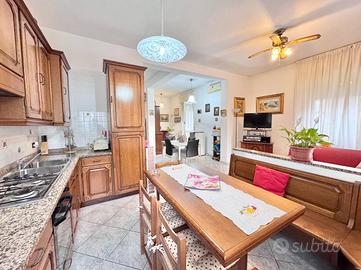 La proprietà è circondata da un cortile privato, ideale per chi cerca spazi esterni riservati, e comprende anche un box doppio di circa 35 mq con una legnaia sovrastante.