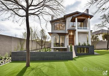 Una veranda d'ingresso ci accompagna al piano terra dove l'abitazione ci accoglie in un'ampia zona giorno, composta da un soggiorno di circa 16 mq con balcone privato, una sala da pranzo di circa 13 mq ed una cucina abitabile separata di circa 16 mq con balcone. Il piano ospita uno studio finestrato, antibagno, bagno finestrato e ripostiglio. La costruzione predispone l'accesso alla casa anche dal retro, tramite un ampio portico. Quest'ultimo dona maggiore luminosità e praticità alla casa.