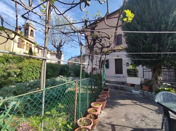 All'esterno la casa offre tutto ciò che serve per godersi la vita all'aperto:garage,due cantine, ottime come deposito o per il vino,giardino privato e un piccolo terrazzino recintato, allestito come un giardinetto con vista panoramica sulla campagna e i tetti del paese.