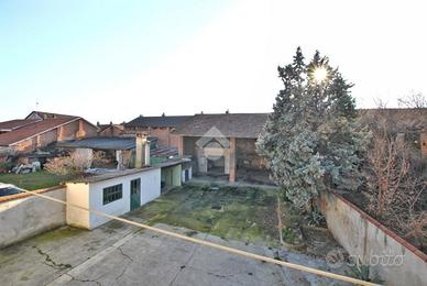 Il cortile è di proprietà esclusiva: i suoi 270 metri quadrati ospitano un'area verde ornamentale, un deposito, una grande tettoia, un box auto e una cantina al piano interrato.