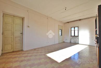 La scala conduce al primo piano, dove si trovano le ultime due stanze che completano l'abitazione. Entrambe le camere sono di generosa metratura: la prima si presenta allo stato grezzo, mentre la seconda è pavimentata e comunica con il vano caldaia di comodo accesso che, grazie alla sua grandezza, è ideale da utilizzare anche come ripostiglio. Il disimpegno del piano consente l'accesso sia al vano sottotetto che all'esterno, sul lungo balcone con vista sul cortile. Ad arricchire la soluzione vi è il grazioso sternito, o ex-fienile, che grazie alla sua esposizione a sud permette di usufruire dell'ampio spazio come zona living all'aperto, ideale per momenti di relax e convivialità.