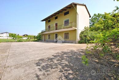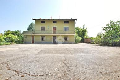 La casa è circondata da un ampio cortile cementato di circa 500 metri quadrati, all'interno del quale si trovano due magazzini e un box auto, situati sotto una grande tettoia. Infine, adiacente alla proprietà, si estende un terreno di circa 470 metri quadrati, un