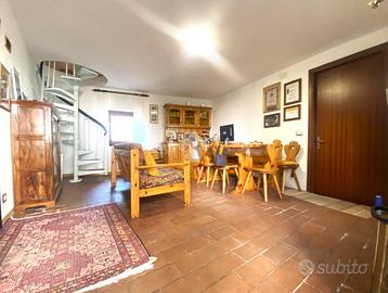 BORGOFRANCO D'IVREA- Frazione Baio Dora: casa semindipendente con giardino privato. La casa che proponiamo in vendita si trova nel centro della frazione Baio Dora, con comodo accesso sia carraio che pedonale. L'immobile è inserito in una corte ed è elevato su due piani fuori terra, oltre al sottotetto. Il piano terra è composto da una cucina collegata a un caratteristico locale tavernetta, impreziosito da volte in mattoni a vista e da un camino che, oltre alla funzione termica (con bocchette di canalizzazione dell'aria nelle varie stanze), diventa un elemento di grande fascino e arredo. Una scala a chiocciola conduce al piano superiore, dove troviamo due camere da letto e un bagno completo di doccia. Come ulteriore spazio accessorio, la casa dispone di un grande locale al piano terreno e tre locali sottotetto, ideali come deposito o da utilizzare secondo le proprie esigenze, oltre ad una tettoia da utilizzare come box auto. Gli infissi sono di recente sostituzione e completi di zanzariere. A rendere particolarmente piacevole la proprietà è il giardino privato di circa 150 mq, curato a prato inglese e impreziosito da una magnolia, arbusti sempreverdi e piante fiorite. Per vivere appieno lo spazio esterno è presente anche una tettoia, perfetta per garantire ombra e comfort durante la stagione estiva.