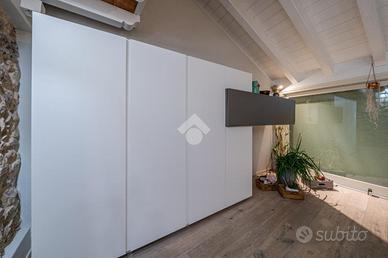 La soluzione si presenta pari al nuovo, essendo figlia di una sapiente ristrutturazione risalente a pochi anni fa, completa di tutti i confort: riscaldamento a pavimento, termostato regolabile in ogni stanza, infissi di ultima generazione, velux automatici, predisposizione aria condizionata in ogni stanza, videocitofono, tapparelle elettriche, vetrate oscuranti.