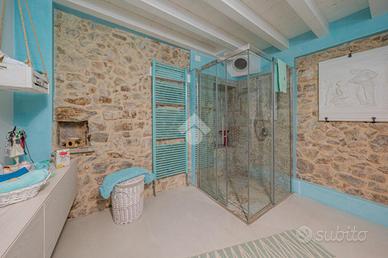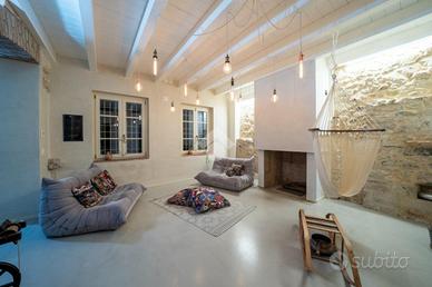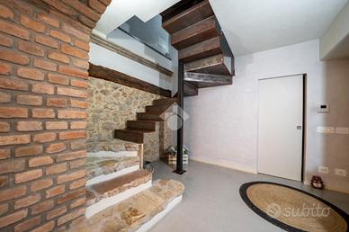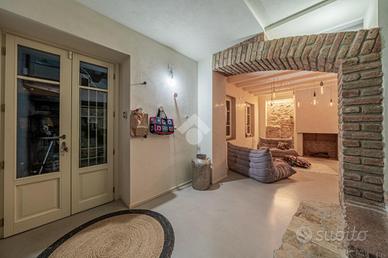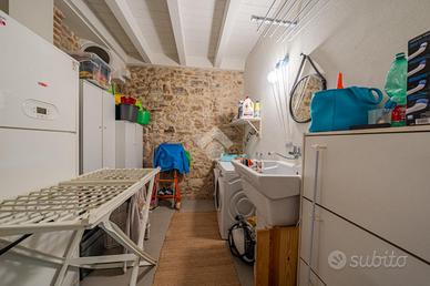 In caratteristica corte, proponiamo in vendita splendida porzione indipendente su due livelli. Al piano terra veniamo accolti da una taverna con camino e particolari pietre a vista, una stanza ora adibita a studio, una comodissima lavanderia e un bagno.