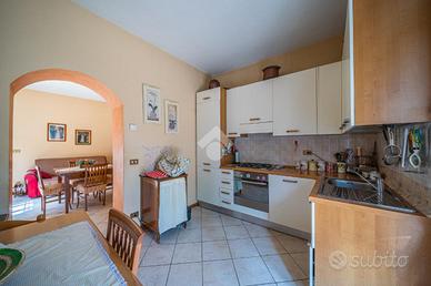 La soluzione si presenta in buone condizioni ed è composta al piano terra da: cucina separata abitabile, ampio e luminoso soggiorno con camino, bagno e camera matrimoniale. Dalla cucina e dal soggiorno si accede al cortile di proprietà, dove troviamo una sorta di taverna/dependance esterna, comodissima per cene all'aperto o per ricovero mezzi.