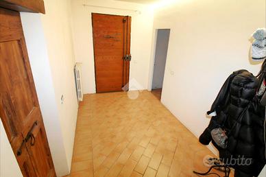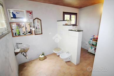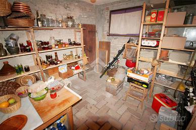 Sempre al piano terra troviamo un disimpegno che conduce a un ampio bagno finestrato con box doccia e zona lavanderia, oltre a una pratica cantina e un comodo ripostiglio.