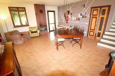 Al piano terra ci accoglie un ingresso che conduce alla cucina separata e alla luminosa zona giorno, impreziosita da un bellissimo camino, entrambi gli ambienti godono di un'ottima esposizione e di accesso diretto al giardino, garantendo luce naturale e continuità tra interno ed esterno.