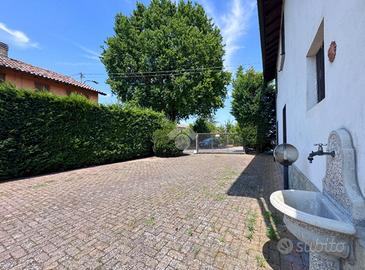 Completa la proprietà un ampio spazio adibito a cortile e parcheggio, oltre al terreno privato, ideale per chi ama trascorrere del tempo all'aria aperta, per un totale di circa 2.000 mq.