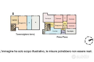 La casa si sviluppa su due piani: piano terra e piano primo.