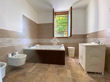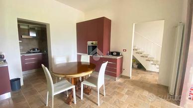 Al piano terra, i pavimenti in gress effetto cotto e gli infissi in legno con vetrocamera conferiscono un'atmosfera calda e tradizionale. Salendo al primo piano, si apprezzano i pavimenti in gress effetto legno e gli infissi in PVC, che garantiscono comfort e modernità.