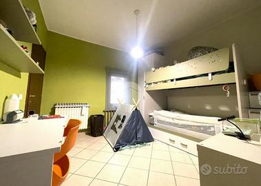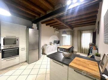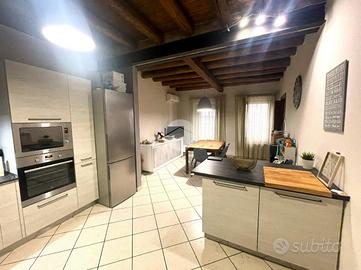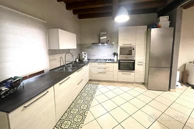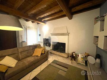 MARCHESINO - In contesto di corte casa terra/cielo libera sui tre lati e disposta su due livelli fuori terra, composta da ingresso, soggiorno con camino, cucina separata abitabile, bagno finestrato con doccia e ripostiglio sottoscala. Al piano superiore camera matrimoniale con cabina armadio, due camere doppie comunicanti e bagno finestrato con vasca. Completa la proprietà un'area esterna recintata realizzata nel 2022 con accesso pedonale e carraio privato, ideale per parcheggiare le auto. Nel 2023 è stata rifatta la guaina del tetto e posato il nuovo manto di copertura.