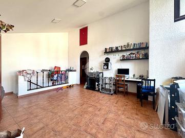 L'immobile presenta al piano terra l'ingresso su soggiorno da cui si ha accesso alla tavernetta, al bagno finestrato adibito a lavanderia ed alla luminosa cucina abitabile, oltre al giardino privato ideale per momenti di relax all'aperto. Tramite comoda scala interna si accede al primo piano composto da tre camere di cui due con sfogo sul balcone, bagno finestrato dotato di box doccia e uno studio, caratterizzato dalle sue ampie vetrate, in cui vi si può ricreare una quarta camera.