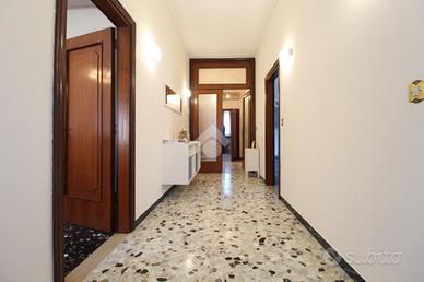 La prima abitazione, situata al primo piano, è così composta: ingresso su corridoio, soggiorno, sala da pranzo, balcone, cucinotto, due camere da letto matrimoniali, una camera singola ed un bagno.