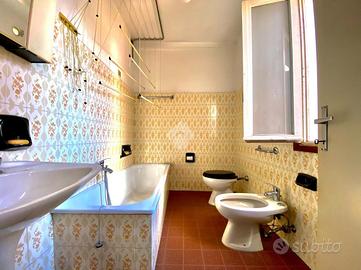 Salendo al primo piano troviamo la zona notte che si compone di bagno con vasca, due camere di cui una con cabina armadio e una terza stanza, attualmente adibita a studio.