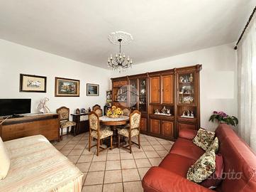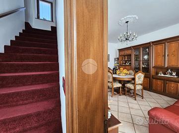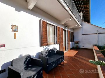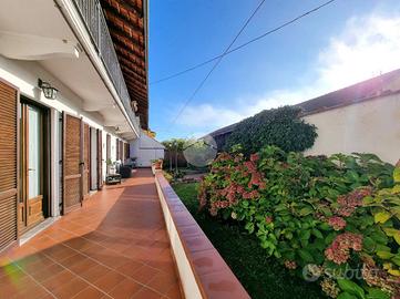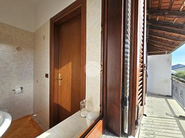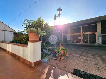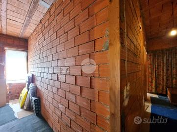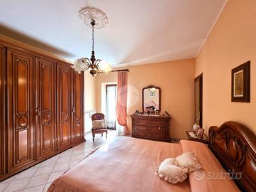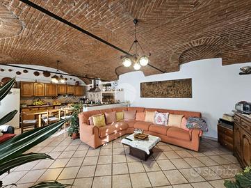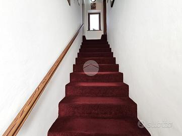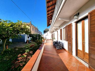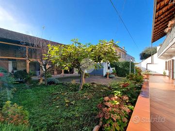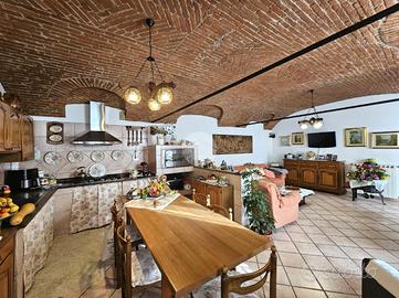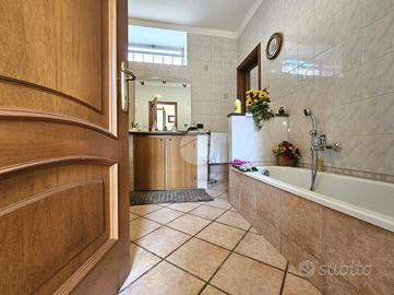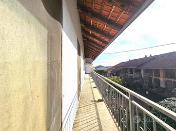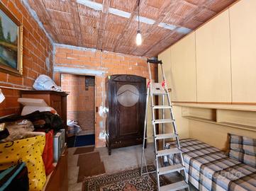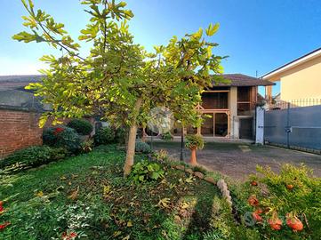 CALUSO; Frazione Are': Casa indipendente disposta su due livelli, completamente ristrutturata nell'anno 1997. Il piano terra dispone di un comodo patio piastrellato con accesso all'abitazione. Dal disimpegno si entra nella zona giorno luminosa e di ampia metratura con soffitto a volta e mattoni a vista. Sullo stesso livello è presente una camera matrimoniale e un comodo bagno dotato di vasca, doccia e ripostiglio. Tramite la scala interna si raggiunge il piano superiore composto da una camera matrimoniale con bagno interno e da tre camere con bagno da ultimare. I quattro locali attualmente sono allo stato grezzo, interamente rifiniti con mattoni sostituiti nel 1997 e con impianti presenti, incluso lo scarico del bagno. Il medesimo livello dispone di un ripostiglio con botola d'ispezione per il tetto. Tutte le stanze del piano primo hanno lo sfogo esterno sul balcone. Gli infissi degli ambienti ultimati sono in legno con doppio vetro e gelosie. Il riscaldamento della casa è alimentato a metano, tramite radiatori con caldaia a condensazione. La canna fumaria dispone di tubo in acciaio che permette di installare una stufa a pellet a servizio di entrambi i livelli. Attraversando il cortile e il giardino di proprietà si raggiunge la travata ad uso autorimessa e deposito per un totale di 60 mq. Completa la proprietà una comoda cantina interrata di circa 30 mq. L'intera abitazione si presenta in ottimo stato conservativo.