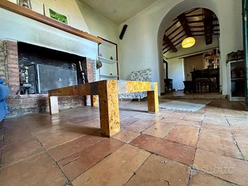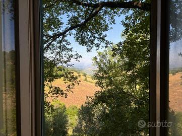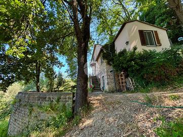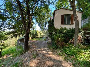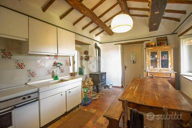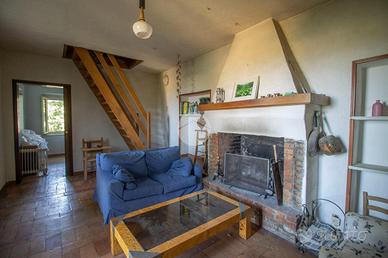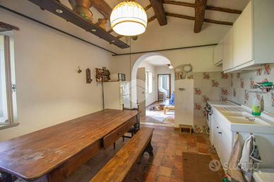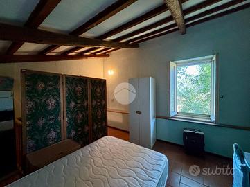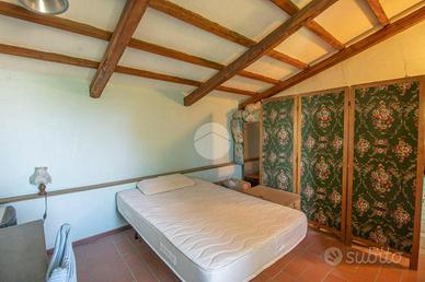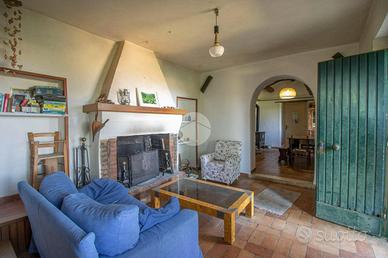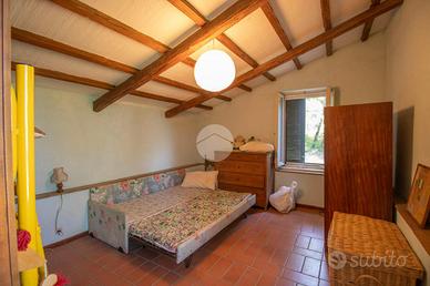 Immerso nel verde con affaccio panoramico, la proprietà si sviluppa su tre livelli. Mantenendo il pavimento in cotto e le travi in legno, al piano primo troviamo un soggiorno con camino, una cucina abitabile, una camera da letto ed un bagno. Al piano secondo, vi sono due camere da letto entrambe con affaccio panoramico.