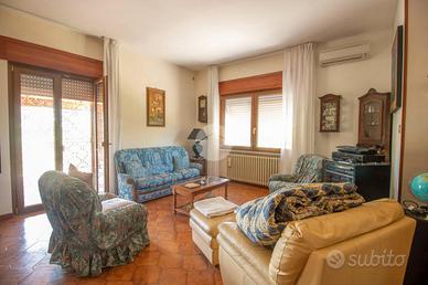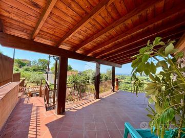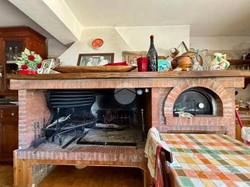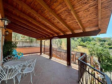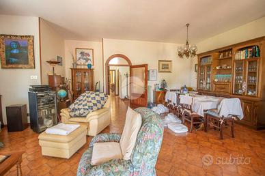 L'immobile che misura circa 275 mq, si sviluppa su due livelli. Al piano primo vi è l'abitazione principale: l'ingresso si apre su un disimpegno che conduce verso un ampio soggiorno luminoso, arricchito da doppia uscita su un grande terrazzo, perfetto per pranzi all'aperto e momenti relax. La zona notte, ospita tre camere da letto matrimoniali di cui due con accesso diretto alla balconata comunicante. Presenti anche due bagni finestrati ed un secondo soggiorno con camino e accesso all'angolo cottura. Al piano inferiore, troviamo una spaziosa taverna arricchita da un grande camino con forno ideale per cene conviviali e giornate in famiglia, una cantina, un bagno di servizio e l'uscita diretta sulla corte esterna.