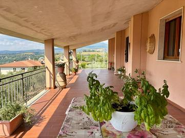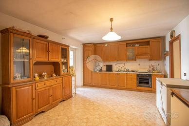 L'immobile, che misura in totale circa 250 mq si sviluppa su due livelli: al piano primo vi è un ampio soggiorno con camino, angolo cottura ed uscita diretta su un terrazzo panoramico di 50 mq, quattro camere da letto e due bagni. Al piano terra vi è un secondo soggiorno con angolo cottura e camino, un locale di sgombero con camino, un bagno, un magazzino con un forno a legna ed un garage.